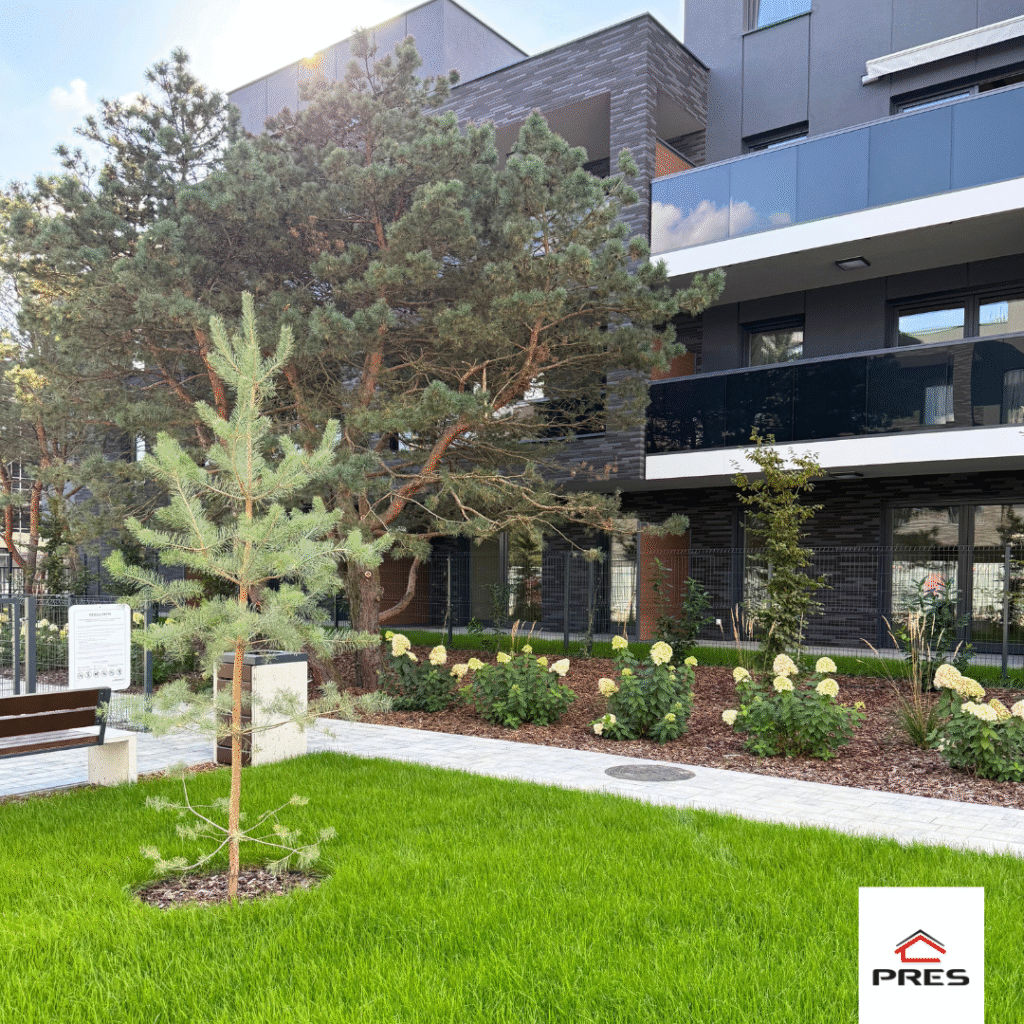 Z każdym dniem przestrzeń nabiera coraz więcej uroku – pojawiają się nowe nasadzenia, a zieleń wspaniale dopełnia nowoczesną architekturę. Pierwsi mieszkańcy już się wprowadzają, dzięki czemu osiedle zyskuje wyjątkową, rodzinną atmosferę. To miejsce, w którym naprawdę można poczuć się jak w domu. 🏡